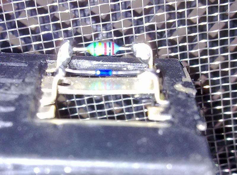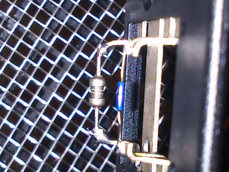 Po trzecie: ten niebieski mniejszy element wygląda mi raczej na jakąś diodę lub ewentualnie kondensator, jeśli to zwykła dioda to masz na mierniku coś takiego jak test diody, w jedną stronę powinien Ci miernik pokazać coś koło 0,7V, w drugą nieskończoność.