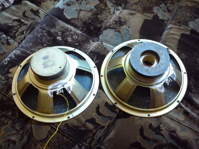 Witam forumowiczów.. Ostatnio stałem się posiadaczem kolumny gitarowej dużych rozmiarów gdzie były zamontowane 2 x 30cm głośniki Tonsila... Modele z nazwy te same a wyglądają inaczej. GDS 30/30 4 ohm. Kolumna była w dobrym stanie ale przetworniki w fatalnym ze względu na fakt, iż leżały porzucone na wiele lat w pomieszczeniach piwnicznych gdzie panowała niska temperatura, ciemność i pleśń. Dlatego musiałem je wyciągnąć i ocenić stan zniszczeń.. Jeden z nich jeszcze poruszał membraną ale obydwie zalazły pleśnią... Drugi głośnik natomiast nie poruszał już membraną. Przyczyną był odklejony podbiegunnik magnesu który zablokował ruch cewki i teraz nie mogę go wycentrować. Proszę o pomoc i błagam jak to można naprawić gdyż ten z podwójną membraną gra bardzo dobrze po tylu latach użytkowania i leżenia w pleśni a Tonsil to Tonsil dźwięk po prostu MEGA SUPER i SPL też więc liczę, że i drugi odżyje i uraduje mnie tą barwą... A nie to co chińskie badziewia nawet nowe. Pozdrawiam..