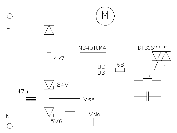 Troszkę go uprościłem, w rzeczywistości są tam jeszcze przekaźniki rewersów i reset mikroprocesora i takie tam. Chodzi mi o sterowania triaka. Był wypalony razem ze ścieżką i jedynie co mi się udało odczytać to BTB1.... (mniemam 6SW) - sterowany prosto z procka. Włożyłem BTB16B i silnik nie ruszył. Tak więc myślę, że to musi właśnie być BTB16SW (logic level), chyba, że się mylę. Co o tym sądzicie?